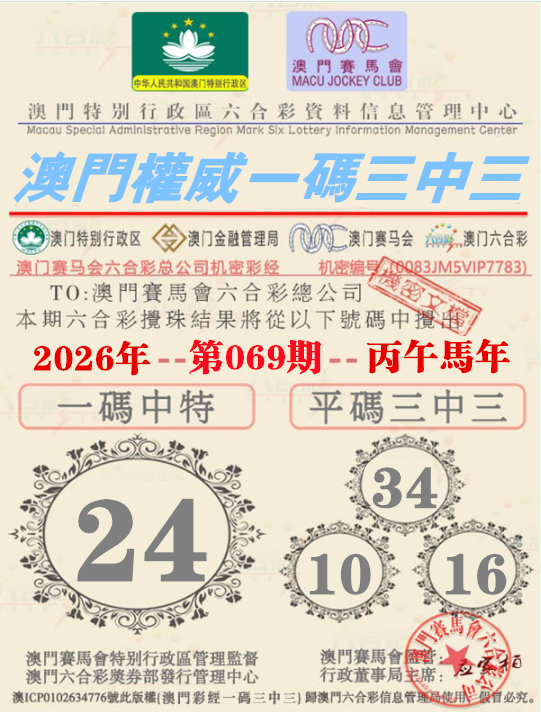069期:【澳门权威资料】√一码三中三√ 澳门权威精准资料