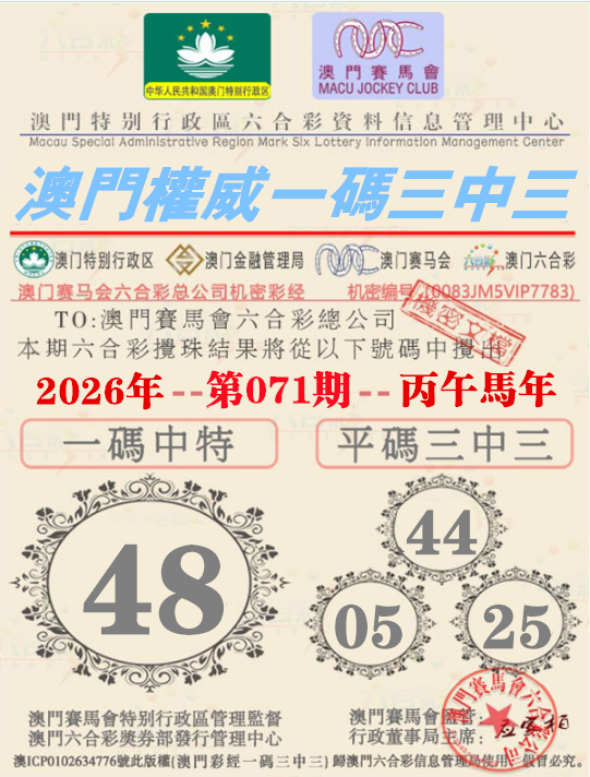 071期:【澳门权威资料】√一码三中三√ 澳门权威精准资料