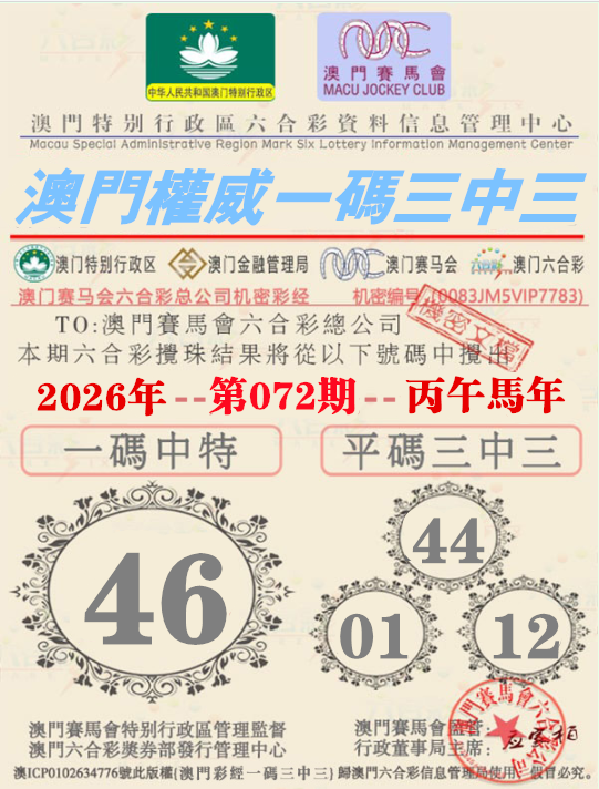 072期:【澳门权威资料】√一码三中三√ 澳门权威精准资料